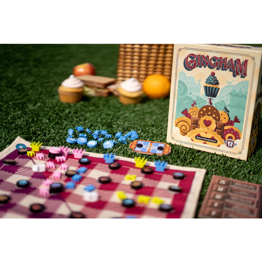 Gingham is a delightfully strategic route-building game where players lead rival ant colonies racing across a picnic blanket filled with enticing sweets. Position your ants strategically, forming connections to claim sweets and establish high-scoring stockpiles. Utilize clever tactics to disrupt your opponents, bumping their ants and carefully managing your sugar cube resources for special abilities. Quick to learn and deeply engaging, Gingham delivers intense, interactive gameplay perfect for game nights, casual gatherings, or gaming on the go.