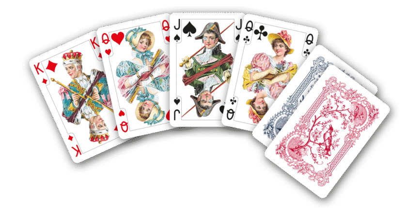 Twee sets speelkaarten in een giftdoos. De kaarten zijn in bridge formaat: 58 x 89 mm.