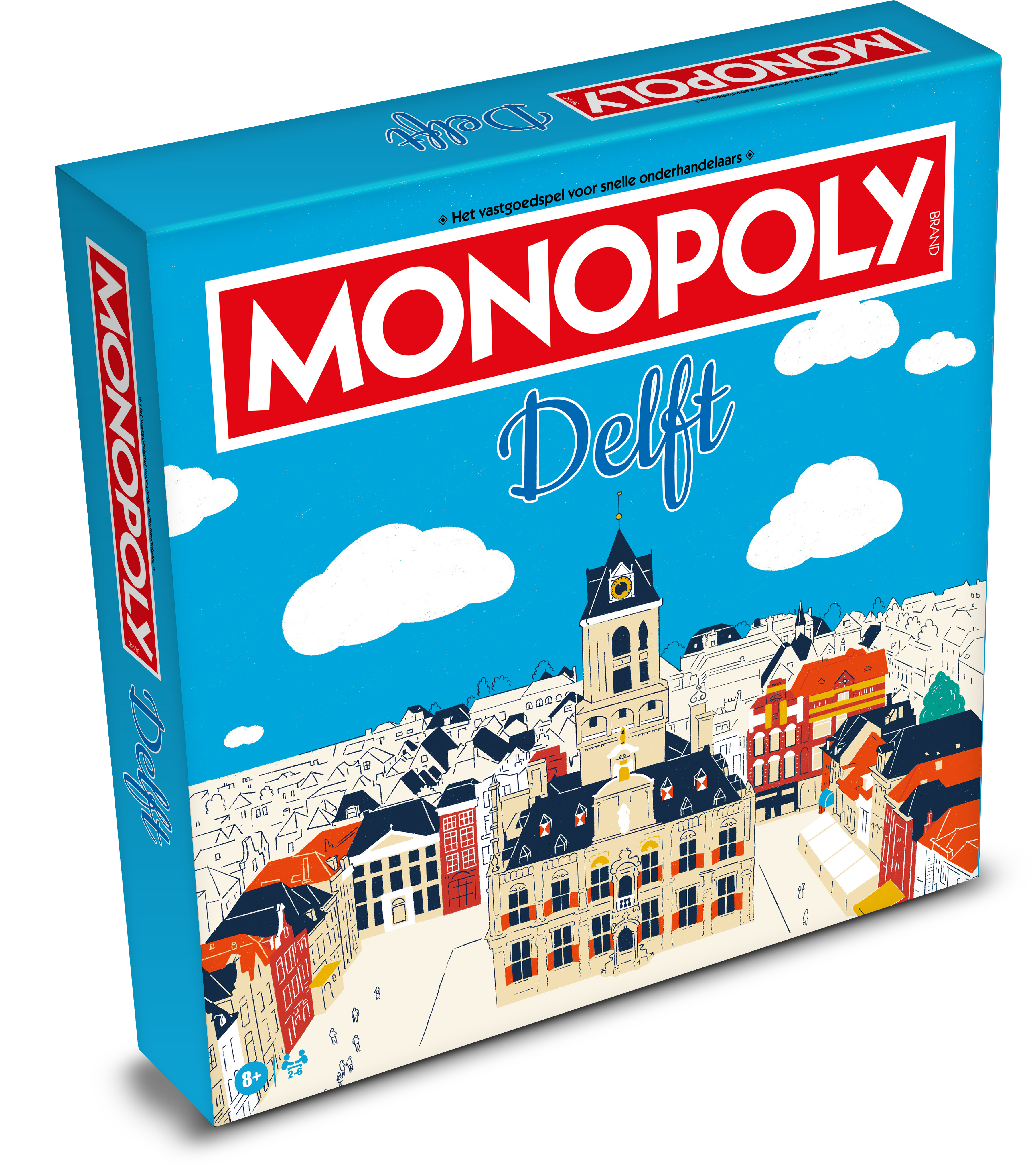 Ontdek Monopoly Delft, de speciale Delft editie van het wereldberoemde klassieke familiespel Monopoly. In deze unieke stadsspel variant draait alles om de mooiste plekken van Delft: van de Markt en het Prinsenhof tot de Oude Kerk. Koop, ruil en handel strategisch met vastgoed en handel, bouw huizen en hotels en word de rijkste speler van de stad!