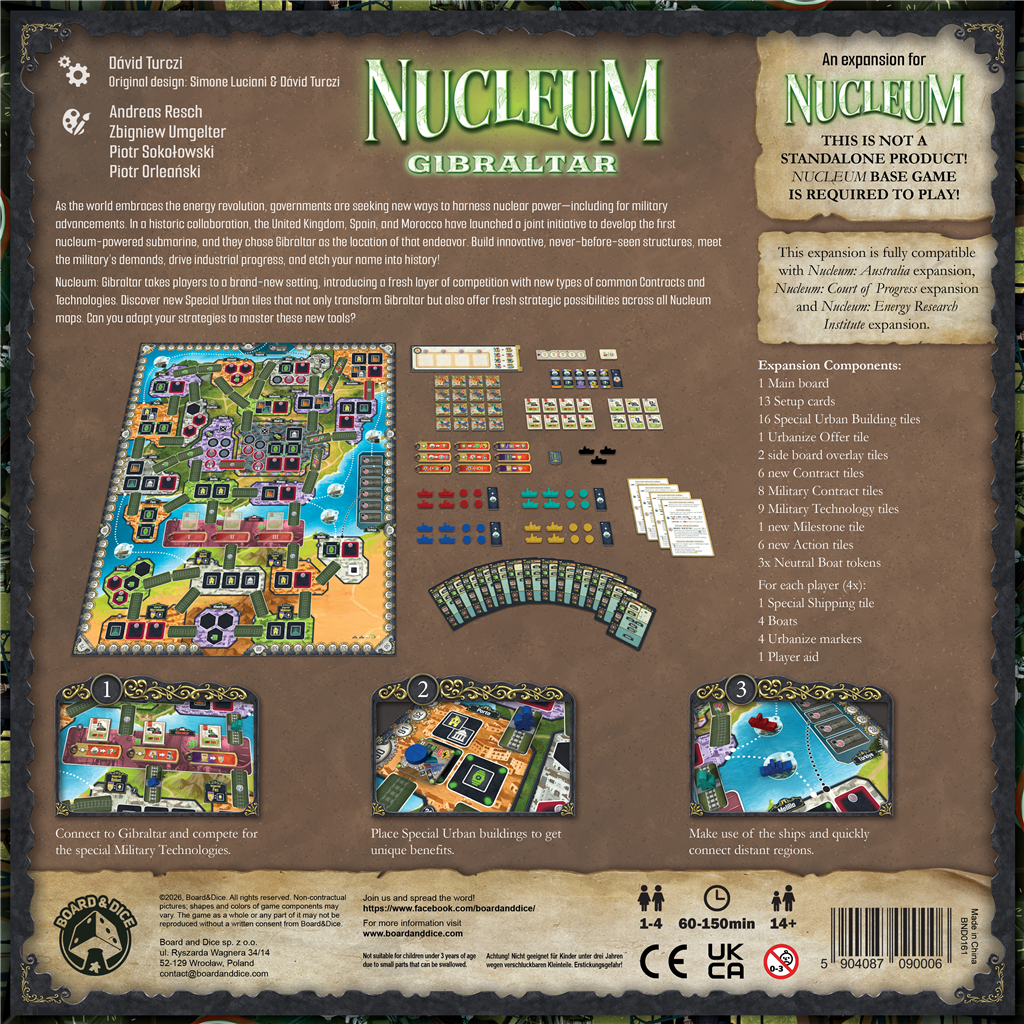 The expansion takes players to a brand new setting. Along come also new Urban Buildings, Contracts and Technologies. Connect to Gibraltar to fulfill Military Contracts to access exclusive military technologies in addition to the eight standard technologies from the Experiment board.