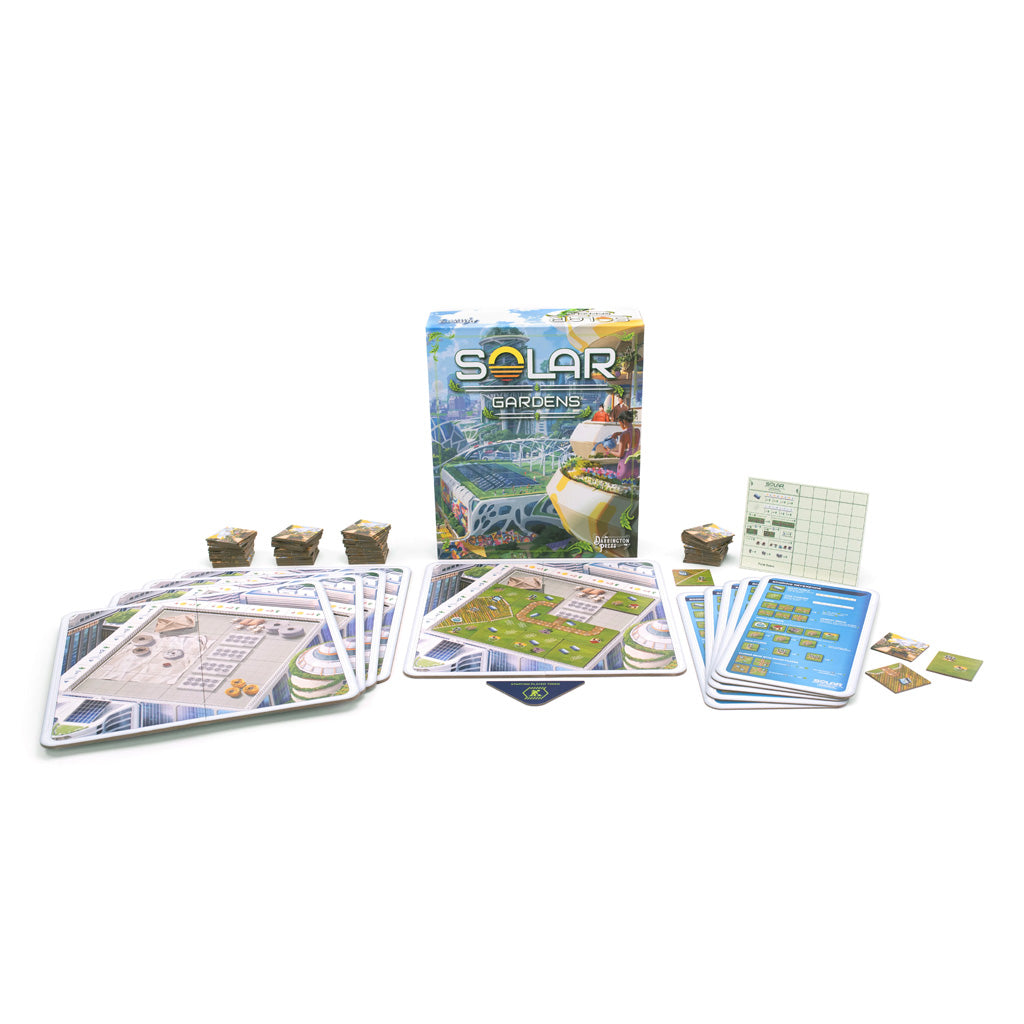 Step into a radiant future with SOLAR GARDENS, the light-hearted board game where strategy meets sustainability! Draft tiles and design your own rooftop paradise, balancing innovation and beauty while supporting real-world conservation efforts. Perfect for families, eco-conscious players, and anyone who loves creative competition, Solar Gardens is a celebration of optimism and green engineering.