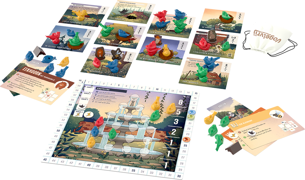 Vogelvrij is een tactisch meerderheids- en area-control-spel waarin je met jouw vogels vecht om de beste plekken in de hoeve. Je bepaalt elke beurt deels waar jouw en andermans vogels terecht komen. Verjaag andermans vogels door wezens handig in te zetten, maar laat anderen jouw vogels niet van het speelveld af de fontein in duwen! Krijg jij jouw vogels op het juiste moment op de juiste plek?