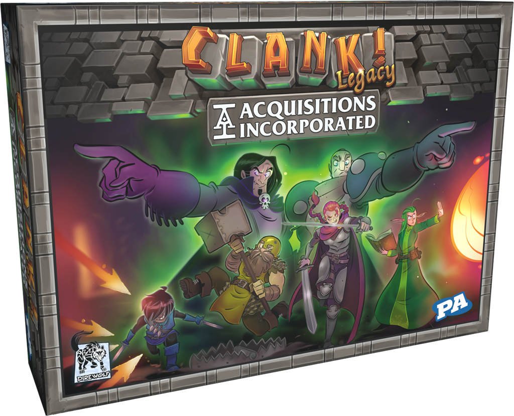 Clank! Legacy: Acquisitions Incorporated extends the deck-building fun of Clank! with legacy-style gameplay! Found your own franchise of the legendary adventuring company Acquisitions Incorporated, and shepherd your fledgling treasure-hunters to immortal corporate glory over the course of multiple games. Your game board, your deck, and your world change as you play to create a unique campaign tailored to your adventuring party. Be cunning, be bold, and most importantly be ready...