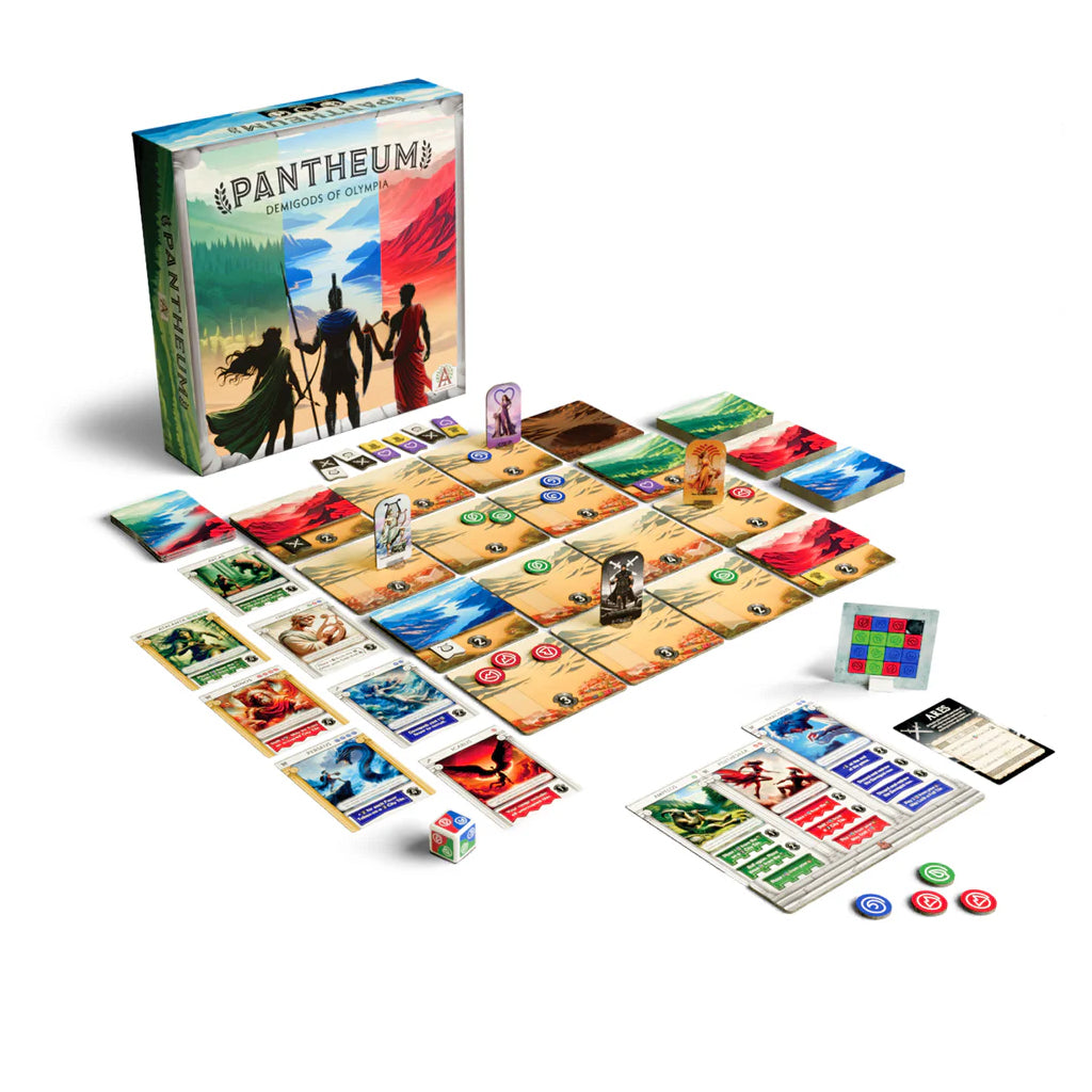 Pantheum: Demigods of Olympia invites you to rewrite the world with the help of legendary Greek heroes. In this strategic board game, 1–4 players compete to build landscapes that match secret objectives while recruiting demigods to gain unique powers. By manipulating elemental resources and stacking demigod abilities, players create synergistic strategies to outmaneuver their rivals. With striking artwork and deep mythological themes, Pantheum is perfect for fans of engine building and ancient legends alike.