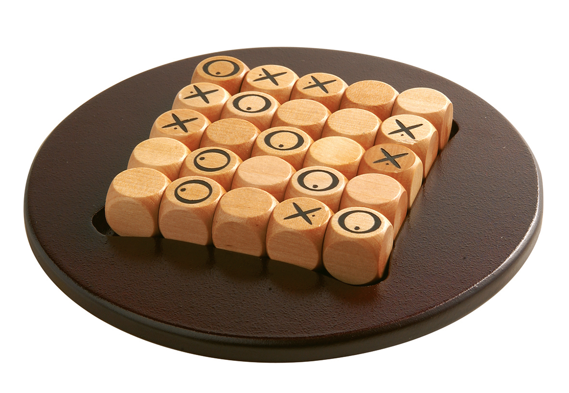 De speler die aan de beurt is, kiest een steen aan de buitenkant met de blanco zijde of zijn eigen symbool naar boven, en duwt deze dan weer in één van de rijen waaruit hij de steen haalde. Zo veranderen er steeds maar een paar stenen van plek. Wie als eerste een horizontale, verticale of diagonale rij met zijn eigen symbool vormt, wint het spel!